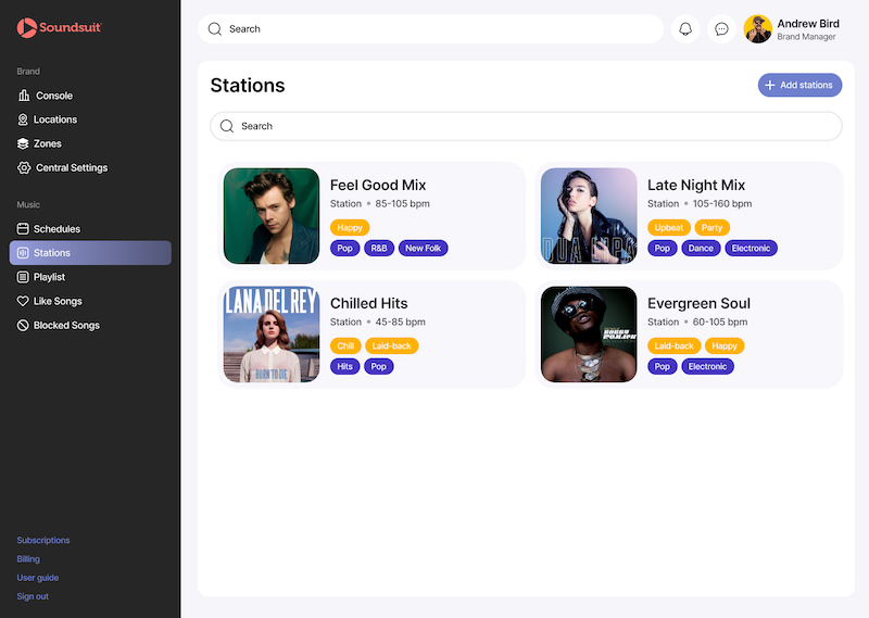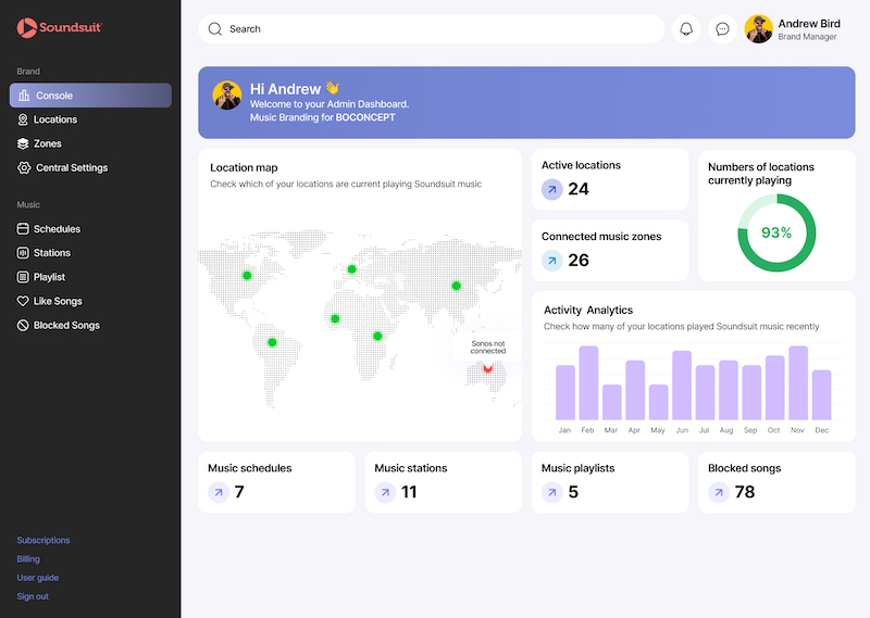 Der HW-Player von Soundsuit kann einfach über ein benutzerfreundliches Dashboard verwaltet werden...