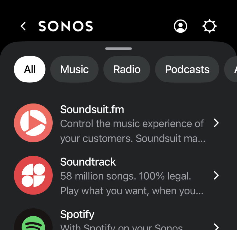 - Diffuser différentes musiques via les enceintes Sonos, dans différentes zones/pièces, avec un seul compte Soundsuit